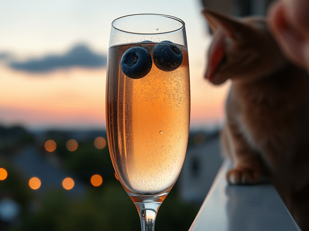 Tonight’s glass has four blueberries bobbing in it. They’re coated in little bubbles. So pretty and delicate. My glass resembles a lava lamp – mesmerizing to watch – the dark blue orbs magnified by the liquid and the glass.