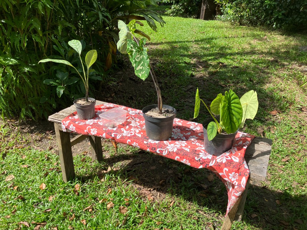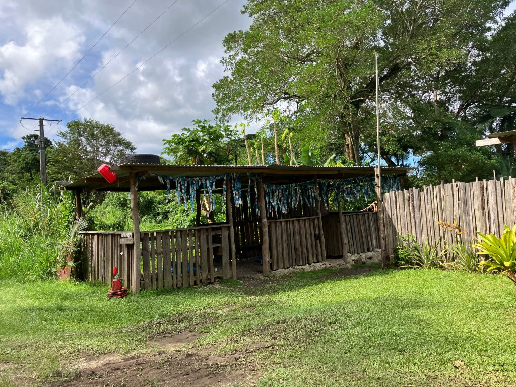 The other side of the island was even greener and lusher with massive creeping vines, countless creeks and rivers, and banana and papaya trees galore. As we drove, we caught glimpses of people’s houses, very basic shacks, often with a long driveway with green lawns and a car or two, sometimes a wrecked car. Each house, or farm, or gite had a little wooden stall or a simple table and umbrella near the road, sometimes with things for sale, like a bunch of green bananas, coconuts, grapefruit, but oddly, more usually pot plants, and even more usually – nothing!