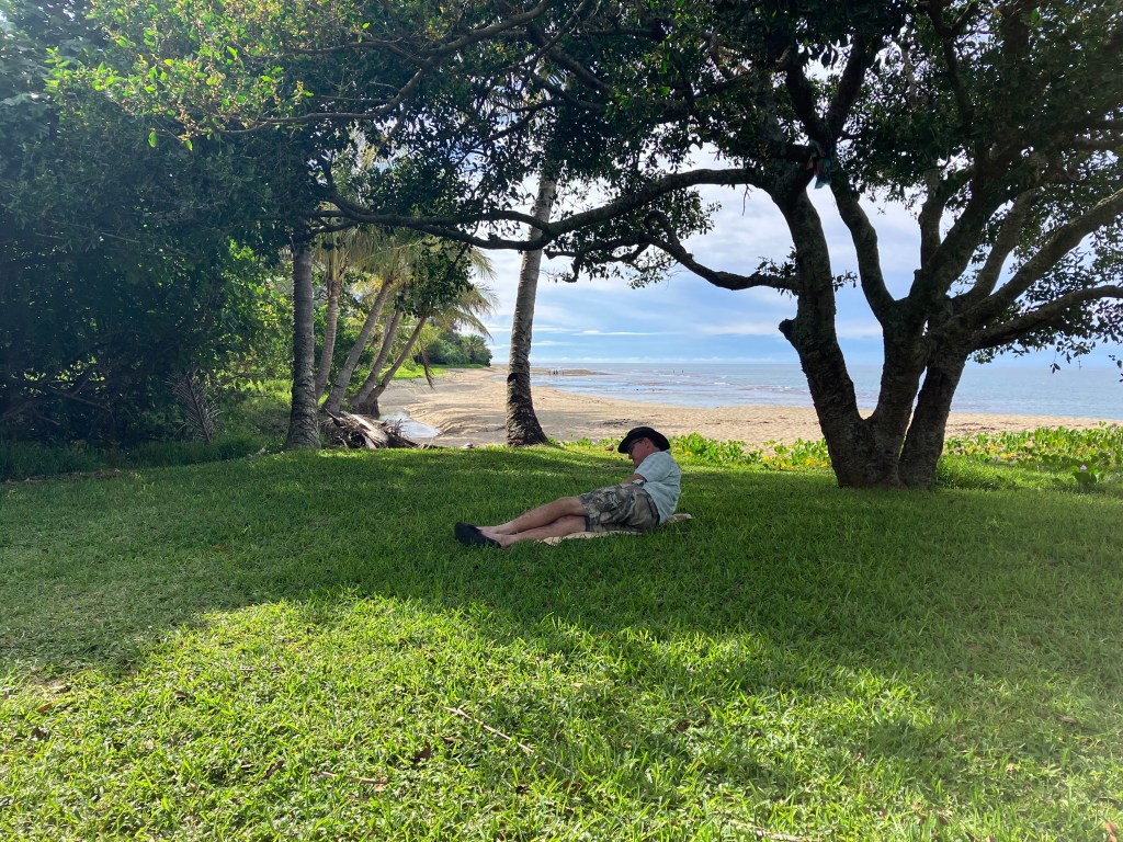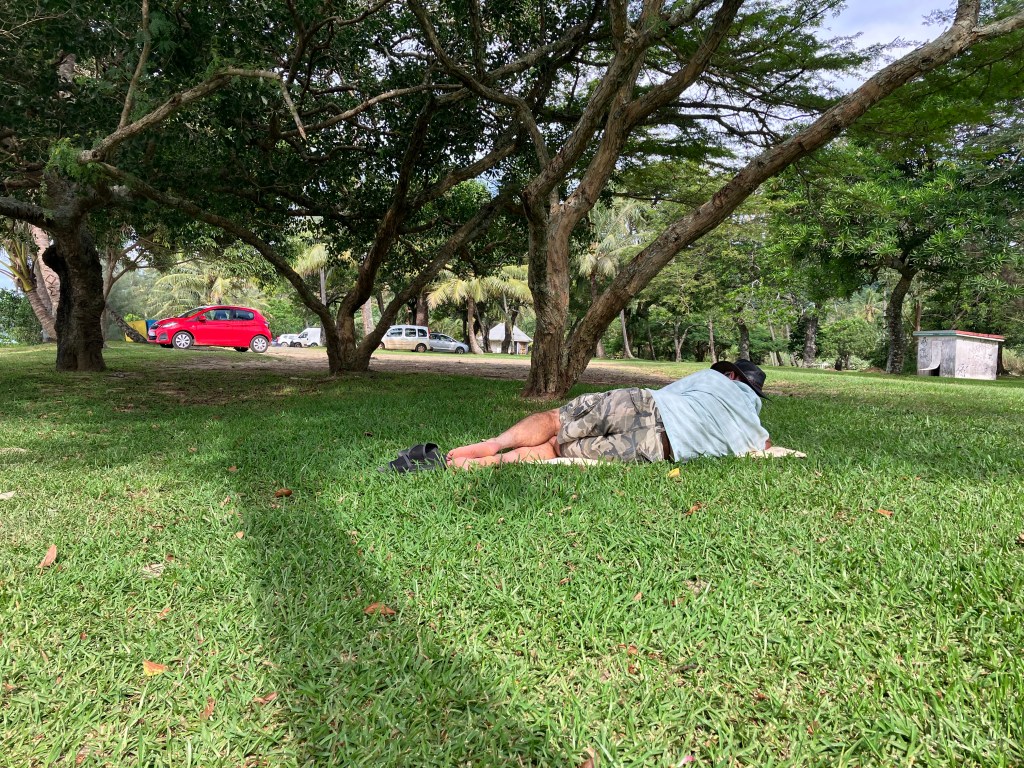 Still with an hour to kill we parked Francoise in a grassy park just next to the hotel and had a quick dip in the tepid sea. Then lazed on the grass reading our Jack Reacher books under a palm tree. At least I sat under a tree until Matt pointed out a coconut could fall on my head. I scoffed but then imagined it happening and moved on to another spot.